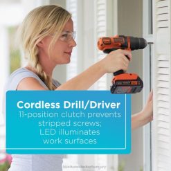 - fúró/csavarozó 3/8″-es tokmány, 0-650 ford./perc ideális barkácsolási projektekhez, 11 állású tengelykapcsoló, amely megakadályozza a csavarok kicsavarását és a munkaanyag sérülését, valamint egy led munkalámpa a jobb láthatóság érdekében szűk vagy sötét helyeken