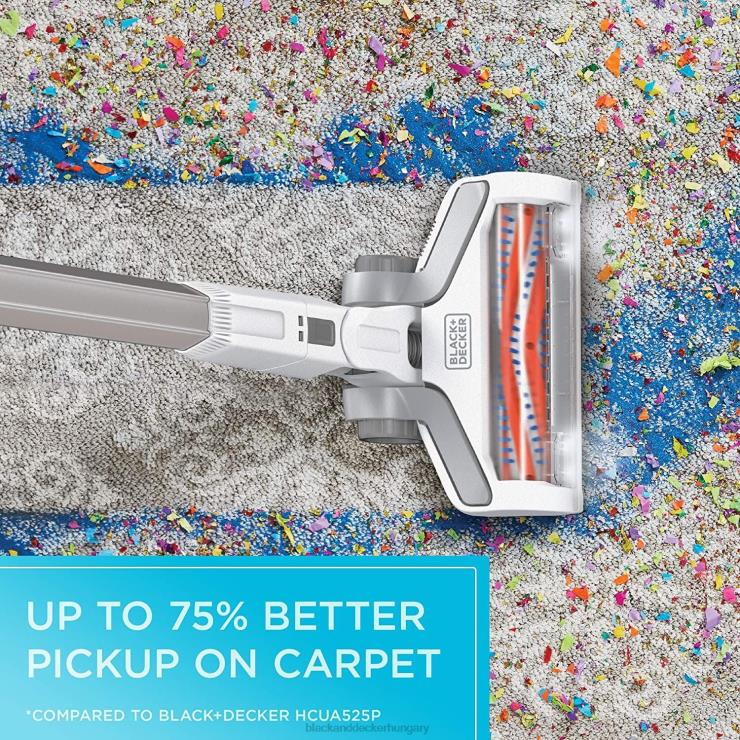 - jobb teljesítmény szőnyegeken: kiváló szívóerő az akár 75%-kal jobb felvételért szőnyegen (a fekete+decker hcua525jp-hez képest)